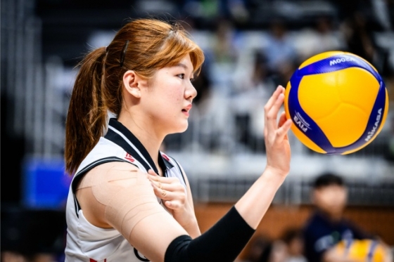 세자르 감독이 이끄는 한국은 1번 김다은(아웃사이드히터·180㎝)-2번 이주아(미들블로커·185㎝)-5번 김다인(세터·172㎝)-16번 정지윤(아웃사이드히터·180㎝)-14번 이다현(미들블로커·185㎝)-97번 강소휘(26·아웃사이드히터·180㎝)-12번 문정원(리베로·174㎝)으로 선발 라인업을 구성했다.