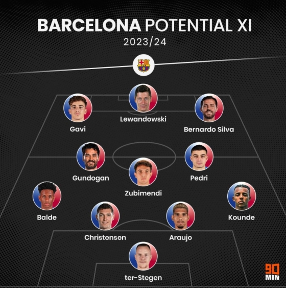 영국 매체 ‘90min’은 지난 2일(현지시간) 2023/2024시즌 바르사의 예상 라인업을 선정해 보도했다.