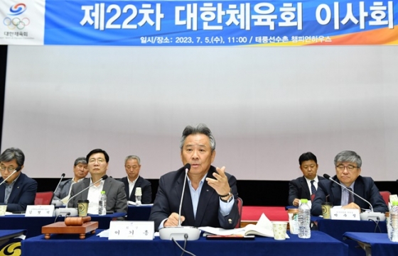 대한체육회(회장 이기흥)는 5일 태릉선수촌 챔피언하우스에서 제22차 이사회를 개최하고 국제종합경기대회 국내 유치신청도시 선정규정 개정 및 경기인 등록 규정 개정, 제19회 항저우하계아시아경기대회 선수단장 등 본부임원 선임의 건 등을 의결했다고 밝혔다.