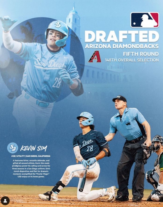 케빈 심은 11일(한국시간) 미국 워싱턴주 시애틀의 루멘 필드에서 열린 2023 메이저리그 신인드래프트에서 5라운드 전체 148순위로 애리조나 다이아몬드백스의 지명을 받았다.