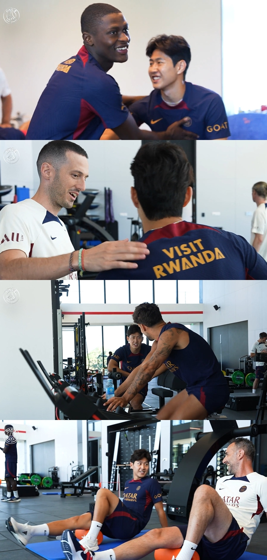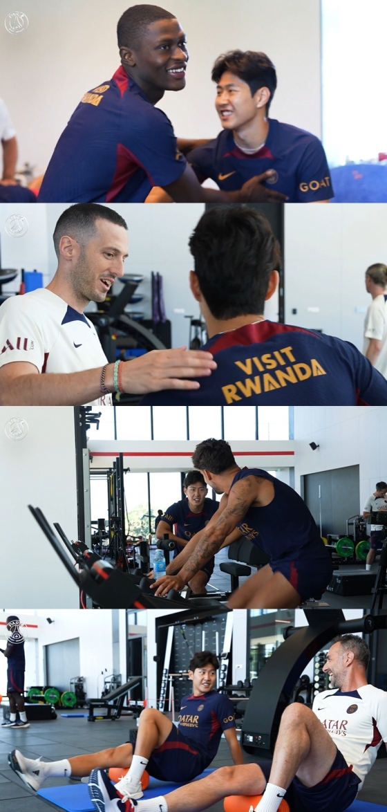 PSG는 12일(한국시간) 공식 홈페이지를 통해 처음으로 팀 훈련에 나선 이강인의 모습을 공개했다. 클럽 하우스에 들어선 이강인은 동료들과 차례로 인사를 나눈다. 노르디 무키엘레와 웃는 얼굴로 하이파이브를 하고 사이클을 타는 후안 베르나트와 담소를 나눈다. 이적생 뤼카 에르난데스와도 이야기를 주고받는다. 네이마르와 마사지 베드에 나란히 앉아 있는 모습도 눈길을 끌었다.