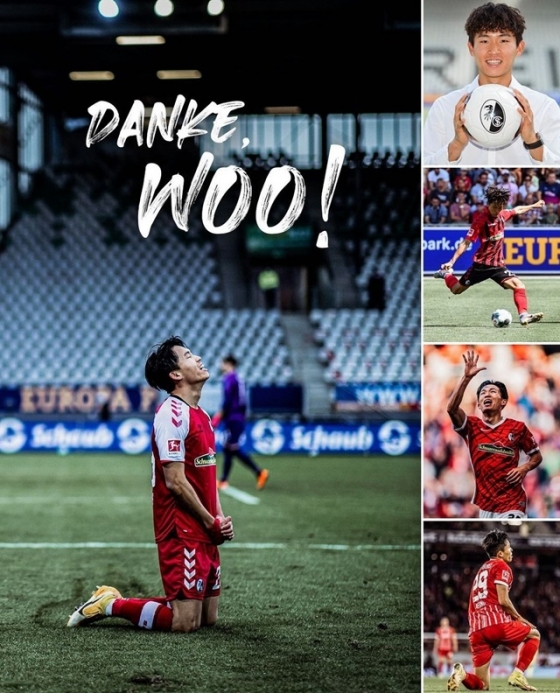 독일 프라이부르크는 12일(한국시간) 구단 공식 SNS을 통해 정우영의 이적 소식을 전했다. 한국 공격수 정우영은 2019년부터 프라이부르크 소속으로 함께 했다. 하지만 이날 같은 리그의 슈튜트가르트로 이적해 팀을 떠났다. 이에 프라이부르크는 "당케 우(DANKE, WOO)!"라는 인사와 함께 정우영의 모습이 담긴 5장의 사진을 업로드했다. 당케는 독일어로 '고맙다'는 뜻이다.