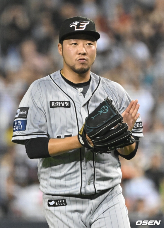 경기 후 최원호 감독은 "앞으로 2주간 쉬기 때문에 문동주를 길게 가져가려는 계획이 있었는데 8회까지 올라와 최소실점으로 역투해줬다"고 칭찬했다.