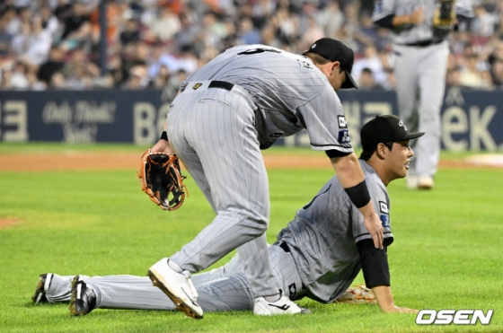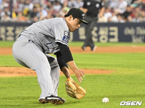 김범수의 4구를 받아 홍창기의 원바운드 타구가 투수 키를 넘었고 유격수 이도윤의 글러브에 빨려 들어갔다. 병살타로 처리하긴 늦은 상황 1루로 공을 뿌려 1점과 아웃카운트 하나를 맞바꿨다. 문성주와는 풀카운트 끝에 볼넷을 내주며 다시 한 번 루상이 가득 찼다. 상대는 베테랑 김현수였지만 김범수는 슬라이더를 던져 2루수 땅볼로 위기를 지워냈다.