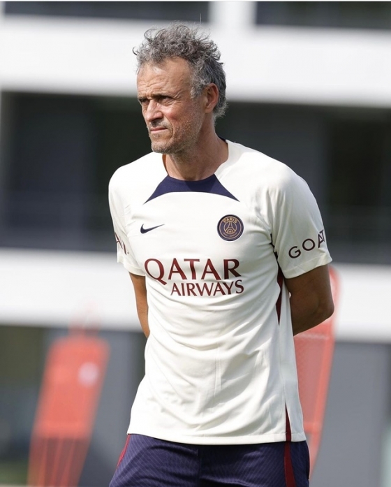 팀 훈련을 지켜보는 루이스 엔리케 감독. /사진=PSG SNS
