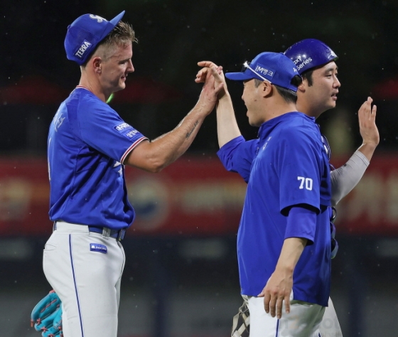 그 사이 타선은 더욱 힘을 냈다. 4회초 최근 KIA에서 트레이드로 옮겨온 류지혁이 선두 타자 안타로 출루했고 1사에서 김재성이 우월 투런 홈런으로 힘을 보탰다. 8회초에도 류지혁의 선두 타자 안타로 시작해 희생번트, 볼넷에 김동진의 쐐기 1타점 적시타가 나왔다. 4-0.