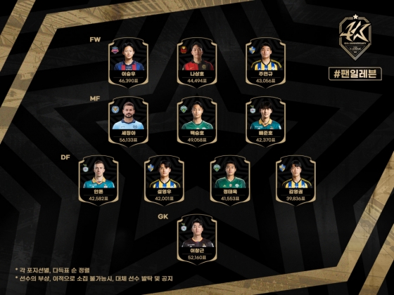 팀K리그 '팬 일레븐' 선수 명단(11명)