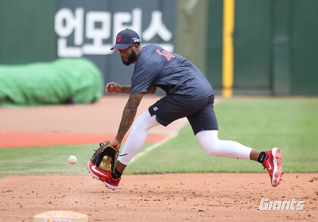 19일 부산 사직야구장, 이날 롯데 선수들은 후반기 개막을 이틀 남겨놓고 컨디션 끌어올리기에 집중하고 있었다. 투수와 내야 수비 호흡을 맞추는 훈련을 하며 팀을 탄탄하게 만들기 위해 노력하고 있었는데, 구드럼 역시 다양한 포지션에서 수비 훈련을 소화했다.