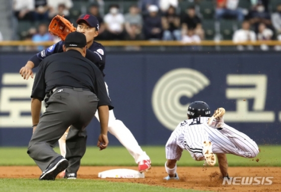 붙박이 주전으로 활약하며 신민재는 타율은 물론이고 21도루로 신민재는 김혜성(키움·20개)을 제치고 이 부문 1위에 올라 있다. 염 감독의 말이 그를 더욱 과감하게 만들었다. 경기 때마다 주루사인을 내곤 하는데 신민재는 "전엔 내가 알아서 스타트했었는데 (사인이 나오면) 이 공에 무조건 가야하는 건데 스타트가 안 나오더라"며 "한 번은 엄청 늦었는데 가서 살았다. 그때 이후로 뛰기 시작했고 가라고 하면 바로 갈 수 있게끔 준비를 했다. 그때 '10번 죽어도 되니 계속 뛰라'고 하셨는데 그때부터 준비한 게 큰 도움이 됐다"고 말했다.