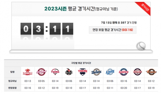 KBO 리그도 꾸준히 평균 경기시간이 3시간대를 유지하고 있다. 타고투저 시즌이었던 2014년에는 무려 3시간24분까지 올랐다. 올해 전반기 397경기에서도 정규이닝 3시간11분, 연장 포함 3시간16분을 기록 중이다. 팬들에게 긴장감 있는 야구 경기를 보여주기 위해서는 경기 시간 단축이 필수적이다. 여기에 빅리그 규정 변화로 월드베이스볼클래식(WBC)을 주관하는 메이저리그 사무국이 다음 대회부터 피치 클락을 도입할 수 있다는 이유도 있다.