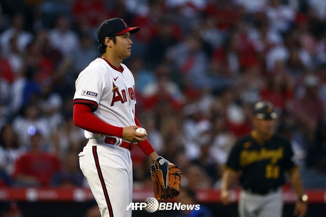 타자로서 홈런 단독 선두를 달리는 등 최우수선수(MVP)가 1순위라는 평가를 받고 있는 오타니지만 투수로는 완전히 만족할 수 없는 시즌을 이어가고 있다. 특히 7월에 나선 3경기에선 모두 5실점하며 크게 흔들리고 있다.