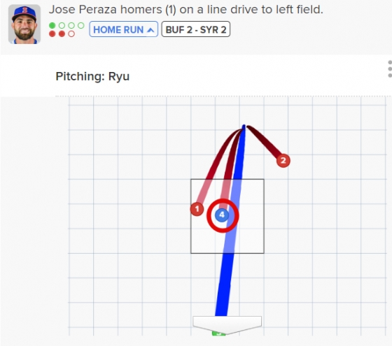 류현진은 3회 선두타자 호세 페라자에게 3구째 우전 안타를 허용했다. 하지만 이번에도 위기 관리 능력이 빛났다. 다음 타자 닉 메이어를 2구째 유격수 앞 병살타로 유도한 뒤 토마스 니도를 3구째 1루수 플라이 아웃 처리하며 이닝을 마쳤다.