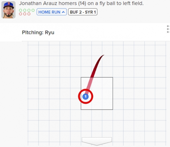 류현진은 22일(한국시간) 미국 뉴욕주 시라큐스의 NBT 뱅크 스타디움에서 펼쳐진 시라큐스 메츠(뉴욕 메츠 산하)와 2023 마이너리그 트리플A 원정 경기에 선발 등판, 6이닝 동안 3피안타(1피홈런) 1볼넷 5탈삼진 2실점을 기록했다. 팀이 4-2로 승리하면서 류현진은 또 승리 투수가 됐다. 총투구수는 85개. 그중 58개가 스트라이크였다.
