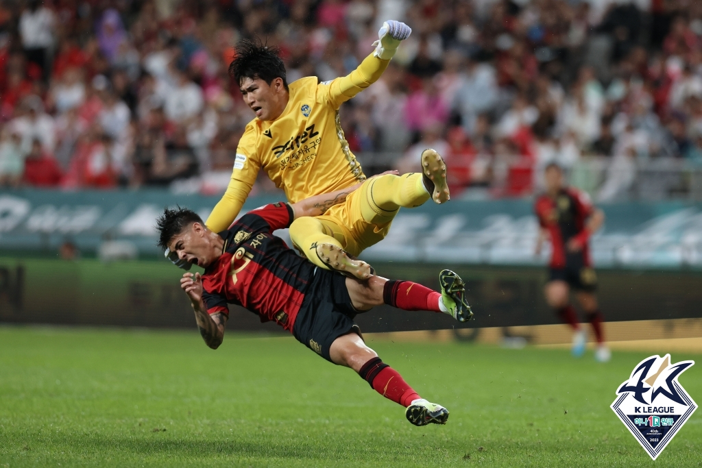 K리그 공동 득점 1위 나상호가 PK 키커로 나섰다. 이어 왼발로 강하게 찼지만 몸을 날린 김동헌 골키퍼의 손에 맞고 골대 상단을 맞은 뒤 아웃됐다. 나상호는 입을 양손으로 가리며 아쉬워했다. 김동헌 골키퍼는 본인 반칙으로 내준 PK를 직접 막아내며