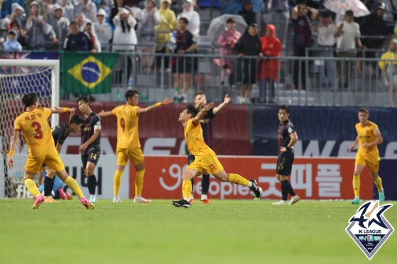 수원FC는 연속 중거리 포로 동점골을 노렸다. 후반 38분 이승우의 중거리 슈팅은 높이 떴다. 2분 뒤 바우테르손의 묵직한 중거리 슈팅이 있었지만, 김경민 선방에 막혔다.
