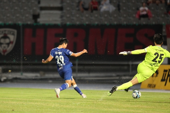 경기는 수중 혈투로 이어졌다. 충남아산은 격차를 벌리기 위한 추가 득점, 부천은 동점골을 위해 고군분투했다.