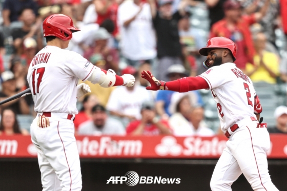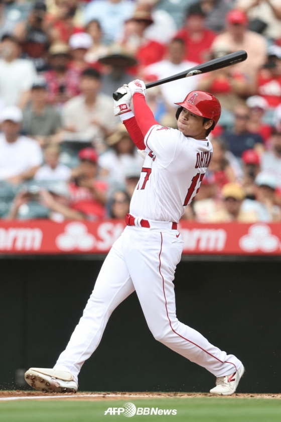 오타니의 시즌 36호 홈런이었다. 지난 18일 뉴욕 양키스전 이후 6일 만에 나온 대포였다. 7월 들어 6번째 홈런. 시즌 77타점째. 메이저리그 공식 사이트 MLB.com의 게임데이에 따르면 비거리는 410피트(125m), 타구 속도는 112.9마일(약 181.7km)로 각각 측정됐다. 눈에 띄는 건 발사각이 19도밖에 되지 않았다는 점. 거의 직선타로 낮게 쭉쭉 뻗어 나갔다는 것이다.