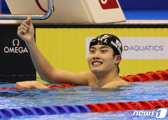 지난해 부다페스트 세계선수권 남자 자유형 200m에서도 1분44초47로 당시 한국 신기록을 세우며 은메달을 획득한 데 이어 두 대회 연속 메달이다. 동시에 이 기록을 0.05초 단축해 자신의 한국 신기록을 다시 쓰는 겹경사를 맞았다.