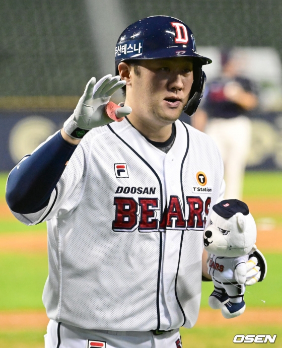 2점을 내준 뒤 맞은 7회말 공격에선 1사 주자 없는 상황에서 김진욱의 시속 144㎞ 속구를 강타, 좌측으로 아치를 그렸다. 비거리 120m의 시즌 14호 홈런. 쐐기점이 됐고 9회초 3점을 더 내주고도 승리를 챙길 수 있는 여유를 안겨줬다.
