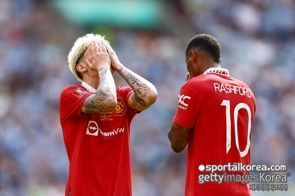 악재가 있었다. ‘맨유 최고의 기대주’ 코비 마이누가 부상당했다. 전반 1분 카세미루가 호드리구를 막는 과정에서 태클했고, 호드리구가 중심을 잃으며 마이누를 덮쳤다. 마이누는 발을 잡으며 고통스러워했고 교체됐다.