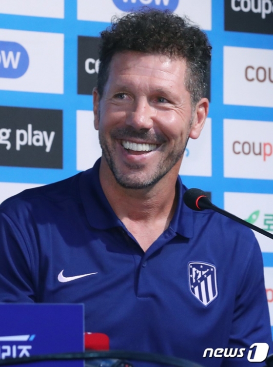 28일 서울월드컵경기장에서 열린 아틀레티코 마드리드의 기자회견. 디에고 시메오네 아틀레티코 감독이 환하게 미소 짓고 있다. /사진=뉴스1 제공