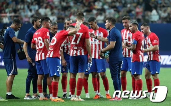 27일 서울월드컵경기장에서 열린 팀K리그와 아틀레티코 마드리드의 쿠팡플레이 시리즈 1차전. 아틀레티코 선수단이 미팅에 참여하고 있다. /사진=뉴스1 제공