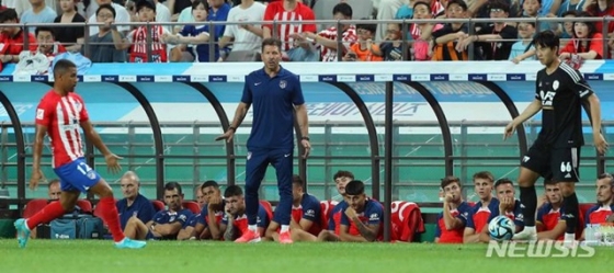27일 서울월드컵경기장에서 열린 팀K리그와 아틀레티코 마드리드의 쿠팡플레이 시리즈 1차전. 디에고 시메오네 아틀레티코 감독이 선수들의 경기를 지켜보고 있다. /사진=뉴시스 제공