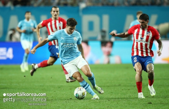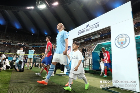 맨체스터 시티는 30일 오후 8시 서울월드컵경기장에서 열린 쿠팡플레이시리즈에서 아틀레티코 마드리드와 0-0으로 전반을 마쳤다.