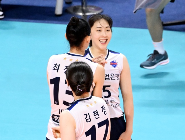 평일임에도 1576명의 관중이 경기장을 찾은 가운데 양 팀의 국가대표 선수들이 펄펄 날았다. IBK기업은행의 표승주는 양 팀 통틀어 최다 득점이 20점을 올리면서 18점의 육서영과 함께 점을 합작했다. 그 뒤를 김현정이 9점, 최정민이 8점을 보태며 팀 승리를 이끌었다.