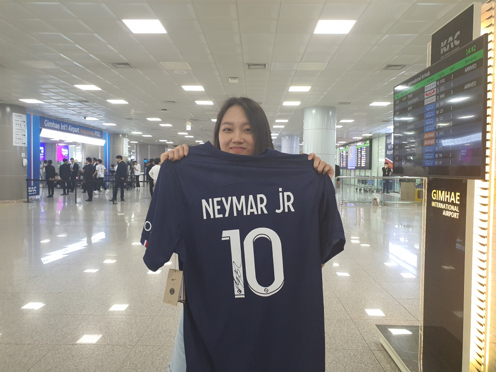 네이마르 사인을 받은 김시원(20) 씨는 "네이마르 선수를 봐서 너무 좋았다. 이강인 선수는 실제로 보니 너무 잘 생겼다"고 '실물 영접' 소감을 전했다. 이어 "네이마르를 선수를 작년부터 좋아했다. PSG 경기와 브라질 경기를 보고 반했다"며 "리그앙 우승하자, 유럽축구연맹(UEFA) 챔피언스리그(UCL)도 우승하자!"고 응원 메시지를 남겼다.