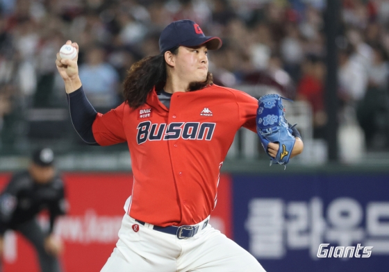 김원중은 2일 부산 사직야구장에서 열린 NC 다이노스와 2023 신한은행 SOL KBO 리그 홈 경기에서 팀이 6-3으로 앞서던 9회 초 마운드에 올랐다.