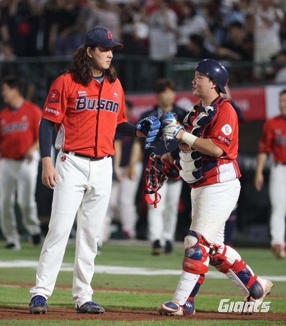 전날 경기에서 2이닝을 소화하며 투혼을 선보인 김원중은 팀의 4연패를 끊기 위해 연투도 불사했다. 첫 타자 권희동을 2구 만에 3루수 땅볼로 처리한 그는 3번 박건우에게 우익수 앞 안타를 맞으며 주자를 내보냈다. 그러나 제이슨 마틴과 윤형준을 연달아 삼진 처리하며 끝내 리드를 지켜냈고, 세이브를 추가했다.
