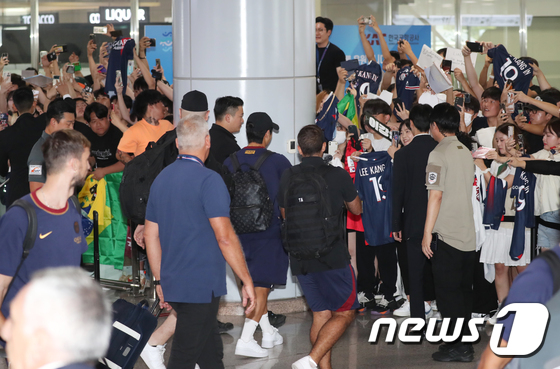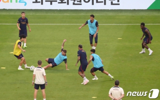 PSG 선수단은 이날 김해국제공항을 통해 입국한 뒤 여정을 풀 새도 없이 부산아시아드주경기장으로 곧바로 이동해 팬들이 훈련을 지켜보는 '오픈 트레이닝'을 진행했다. 이강인이 그라운드에 들어서며 팬들을 향해 박수를 치자 팬들은 뜨거운 함성을 질렀다.