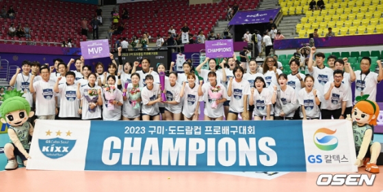 GS칼텍스는 5일 오후 경상북도 구미 박정희체육관에서 열린 화성 IBK기업은행과 2023 구미·도드람컵 프로배구대회(KOVO컵) 결승전에서 세트 점수 3-1(26-28, 25-23, 25-13, 25-21)로 승리를 거뒀다.