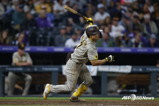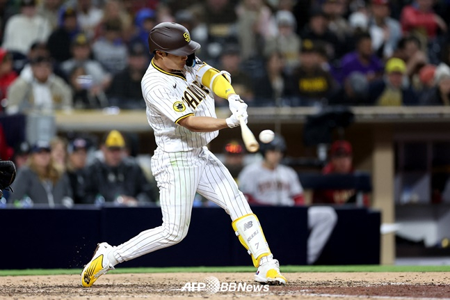 이날도 인상적인 강속구 대처 장면이 나왔다. 상대 투수는 평균 99마일(약 159.3㎞) 직구를 던지는 바비 밀러(24). 3회말 맞대결에서 김하성은 안쪽으로 몰린 시속 100.5마일(약 161.7㎞)의 고속 싱커를 102.2마일(약 164.4㎞)의 총알 같은 타구로 되돌려주며 펄펄 나는 듯한 모습을 보였다.