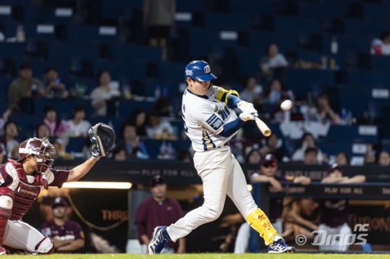 하지만 이후 김성욱의 방망이는 불을 뿜었다. 6회 말 등장한 그는 키움 2번째 투수 이명종의 가운데 패스트볼을 받아쳐 우익수 앞에 떨어지는 안타로 살아나갔다. 이어 최보성의 좌중간 안타와 박세혁의 2루 땅볼로 3루까지 진루했지만 득점을 올리진 못했다.
