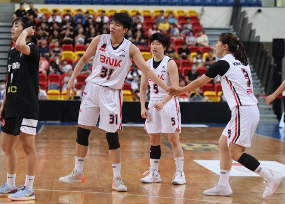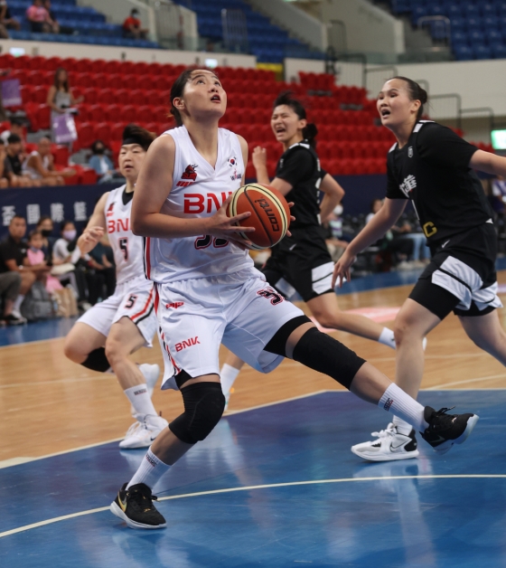 이날 BNK는 경기 초반 대만의 공세에 잠시 고전해 6-10으로 끌려갔다. 그러나 진안의 골밑 공격이 살아나면서 빠르게 분위기를 바꿨고, 중반 교체 출전한 한엄지가 14-12에서 미들슛과 3점포로 5점을 뽑아 19-15로 앞선 채 1쿼터를 마쳤다.