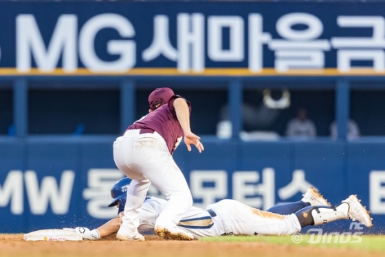 이어 3회에는 선두타자로 나와 기습번트를 대고 1루로 달려갔다. 아웃 타이밍이었지만 투수 장재영의 악송구가 나오면서 서호철은 2루까지 향했다. 최초 판정은 아웃이었지만 비디오 판독 끝에 세이프로 정정됐다.