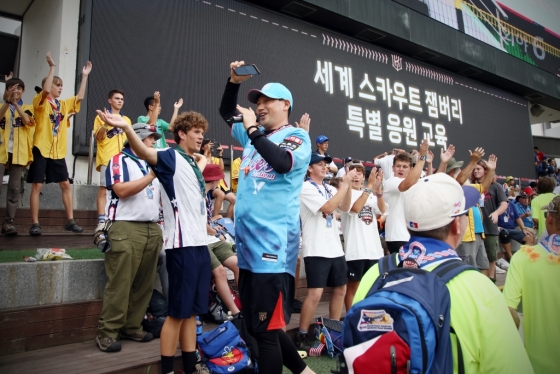 이어 "경기 전 전광판에는 '웰컴(WELCOME)' 메시지를 띄워 잼버리 대원들의 한국 일주를 격려하고 위즈파크 방문을 환영한다는 뜻을 전했다. 또 구단 마스코트 빅또리 키링 등 기념품을 선물했다"고 덧붙였다.
