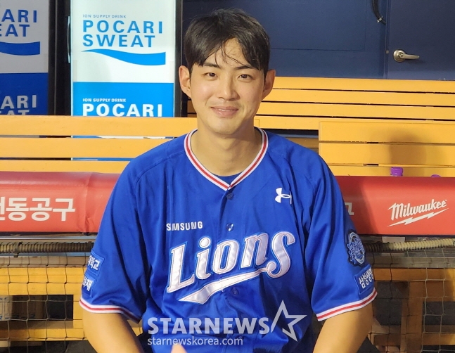 경기 후 수훈 선수 인터뷰를 하는 구자욱(30·삼성 라이온즈)을 향해 한 팬은 친근하게 소리를 질렀다. 구자욱도 이를 듣고 미소를 지었다.