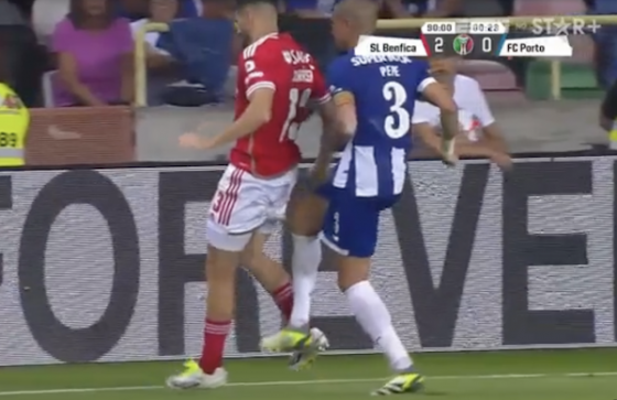 나이가 들면서 조금 유해졌다는 평가가 있었지만 이날은 달랐다. 선발로 출전한 페페는 전반 추가 시간 옐로카드를 받았다. 하이라이트는 경기 막바지에 나왔다. 페페가 후반 45분 경합 과정에서 상대 선수의 엉덩이를 무릎으로 가격했다.