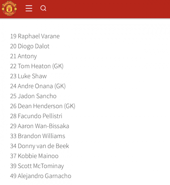 지난 10일 맨유가 공식 홈페이지를 통해 2023/24시즌 선수단의 임시 등번호를 공개했다. 맨유는 ‘임시 등번호가 잉글리시 프리미어리그(EPL)에 제출됐다. 이적 시장 기간이 끝난 후 변경될 수도 있다. 대부분의 번호가 그대로 유지될 것’이라고 전했다.