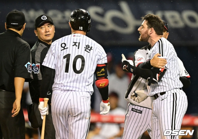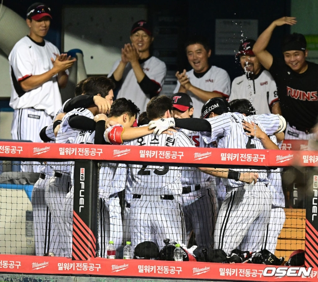 경기 후 '승장' 염경엽 감독은 "문보경의 홈런으로 전체적인 경기의 분위기를 우리 쪽으로 가져올 수 있었다. 결정적인 순간 김현수가 팀의 중심으로서 결승 홈런을 치며 승리할 수 있었다. 투수 쪽에서는 6회 가장 중요한 순간에 함덕주가 위기를 막아주면서 승리할 수 있는 가능성을 얻었다. 이어 던진 새로운 승리조 백승현, 유영찬이 좋은 투구로 자기 이닝을 책임져줬다. 끝으로 고우석이 깔끔한 피칭으로 마무리하며 승리할 수 있었다. 동점을 허용했지만, 끝까지 집중력을 보여준 선수들을 칭찬하고 싶다. 궂은 날씨에도 열심히 응원해주신 팬들 덕분에 3연승을 거둘 수 있었다. 감사드린다"고 인사했다.