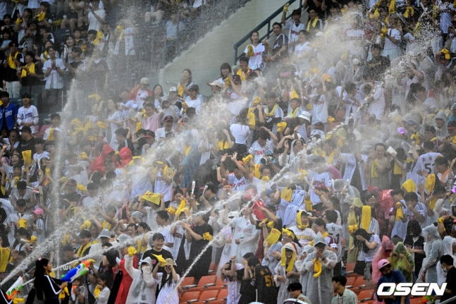 그리고 8회말. LG가 약속의 8회말을 만들었다. 키움의 세 번째 투수는 문성현. 그러나 선두타자 홍창기가 2구 승부 끝에 우전 안타로 출루했다. 후속 정주현의 희생번트로 2루까지 간 홍창기. 그 이후에는 작전이 필요 없었다. 다음 타자는 김현수. 초구 볼. 2구째 스트라이크. 이어 다시 볼 2개를 침착하게 골라냈다. 유리한 3-1의 볼카운트. 그리고 5구째 문성현의 134.6km 슬라이더를 제대로 걷어 올렸다. 공은 빗속을 뚫으며 외야 우측 관중석으로 날아갔다. 물대포를 맞고 응원하던 LG 팬들에게 짜릿함을 선사한 김현수의 투런포였다. 점수는 5-3이 됐다. 타구 속도는 176.3km. 발사각은 24.9도. 비거리는 127.6m였다. 김현수의 시즌 4호 홈런.