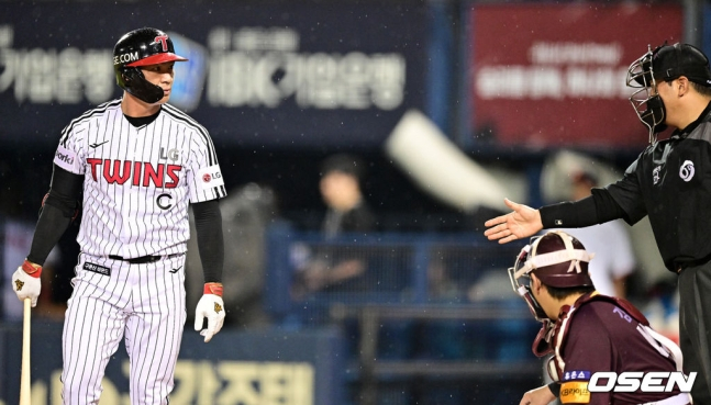 그리고 6회말. 이번에는 LG 쪽에서 스트라이크 존에 불만이 폭발했다. 선두타자 오스틴이 초구와 2구째 공이 모두 스트라이크가 선언됐다. 3구째는 볼. 이어 4구째 몸쪽 149km 속구에 루킹 삼진 판정이 내려지자 오스틴이 격분하며 항의를 펼치기 시작했다. 오스틴과 마주한 송수근 주심도 쓰고 있던 마스크를 벗은 뒤 잠시 오스틴과 이야기를 나누다가 퇴장 명령을 내렸다. 그러자 오스틴은 배트를 내던진 뒤 헬멧을 그라운드에 내동댕이치며 격분했다. 옆에 있던 오지환과 김정준 수석코치가 오스틴을 말리면서 사태는 진정됐다. 염경엽 감독도 그라운드로 나와 심판진과 이야기를 주고받았다. 오스틴의 퇴장은 올 시즌 22번째, 선수로는 12번째 퇴장이었다. 이어 후속 오지환도 주심의 볼 판정에 다소 불만을 드러낸 채 중견수 뜬공으로 물러났고, 문보경이 1루 땅볼에 그치며 6회말이 종료됐다.