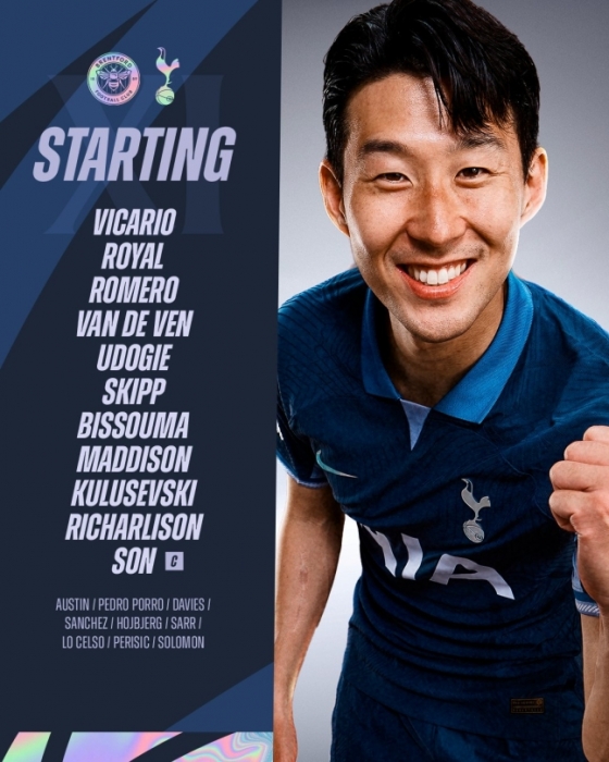 엔제 포스테코글루 감독은 4-2-3-1 포메이션을 내세웠다. 손흥민은 주장 완장을 차고 왼쪽 윙포워드로 선발 출전했다. 히샬리송이 최전방 원톱으로 나서고 데얀 클루셉스키가 왼쪽 윙포워드를 맡았다. 중원은 제임스 매디슨과 이브 비수마, 올리버 스킵이 구성했다. 백포는 데스티니 우도지, 미키 반 더 벤, 크리스티안 로메로가 에메르송 로얄이 포진했다. 골키퍼 장갑은 굴리엘모 비카리오가 꼈다.