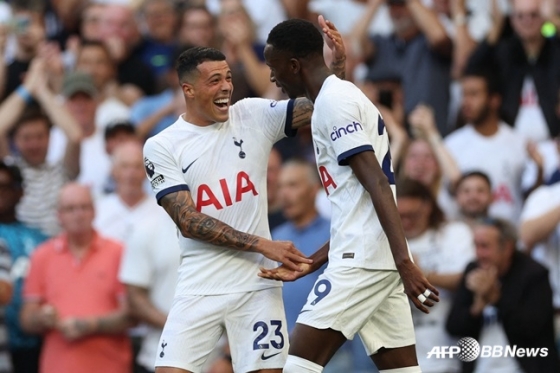 토트넘은 20일(한국시간) 영국 런던의 토트넘 핫스퍼 스타디움에서 열린 맨체스터 유나이티드와의 '2023~2024시즌 잉글리시 프리미어리그(EPL)' 2라운드 홈 경기에서 파페 사르와 벤 데이비스의 연속골에 힘입어 2-0으로 승리했다. 1라운드 브렌트포드전을 2-2로 비겼던 토트넘은 시즌 첫 승리를 따냈다. 올 시즌 새롭게 지휘봉을 잡은 엔제 포스테코글루 감독도 EPL 첫 승을 올렸다.