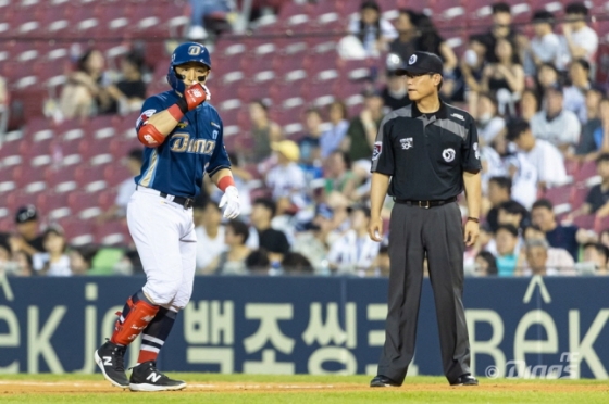 두산도 1회말 박계범이 깔끔한 좌전안타로 출루했고 1사에서 로하스가 기술적인 타격으로 밀어쳐 좌전안타를 만들었다. 박계범을 3루까지 향했다. 그러나 양석환의 강한 땅볼 타구가 유격수 글러브로 빨려들어갔고 2루수와 1루수를 거쳐 병살플레이로 완성됐다. NC의 1-0 리드 유지.
