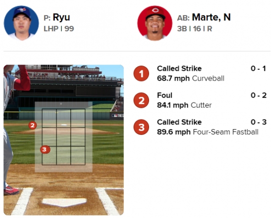 ◆ 4회 : 7점 차 리드를 등에 업은 류현진, 사실상 신시내티 타선을 농락하다