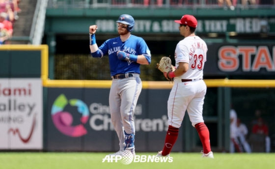 한편 토론토는 이날 무려 5개의 홈런을 몰아치는 등 장단 12안타를 때려낸 끝에 10-3 완승을 거뒀다. 1회 1사 3루에서 상대 실책을 틈타 1점을 선취한 토론토는 2회 키어마이어와 벨트의 투런포로 5-0을 만들었다. 신시내티가 2회 토론토의 수비 실책 쇼가 펼쳐지는 동안 2점을 만회한 가운데, 토론토는 4회 홈런으로만 4점을 뽑으며 사실상 승부에 쐐기를 박았다. 선두타자 비셋이 우월 솔로포, 후속 벨트가 좌월 솔로포를 각각 친 뒤 무사 1루에서 스프링어가 좌월 투런 아치를 그렸다. 점수는 9-2까지 벌어졌다. 스프링어가 더그아웃에서 세리머니를 펼치는 순간, 더그아웃에 앉은 채 환하게 웃는 류현진의 모습이 잡히기도 했다. 7회 신시내티가 스테판슨의 좌월 솔로포로 한 점을 만회했지만, 토론토는 9회 잰슨의 좌전 적시타로 10-3 승리에 마침표를 찍었다.